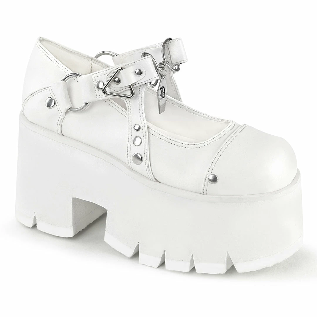 Cut Out Platform Hook & Loop Maryjane Featuring Silver Stud Embellishments on Upper, Triangle & O-Ring Details & Coffin Shaped Charm at Center Strap
