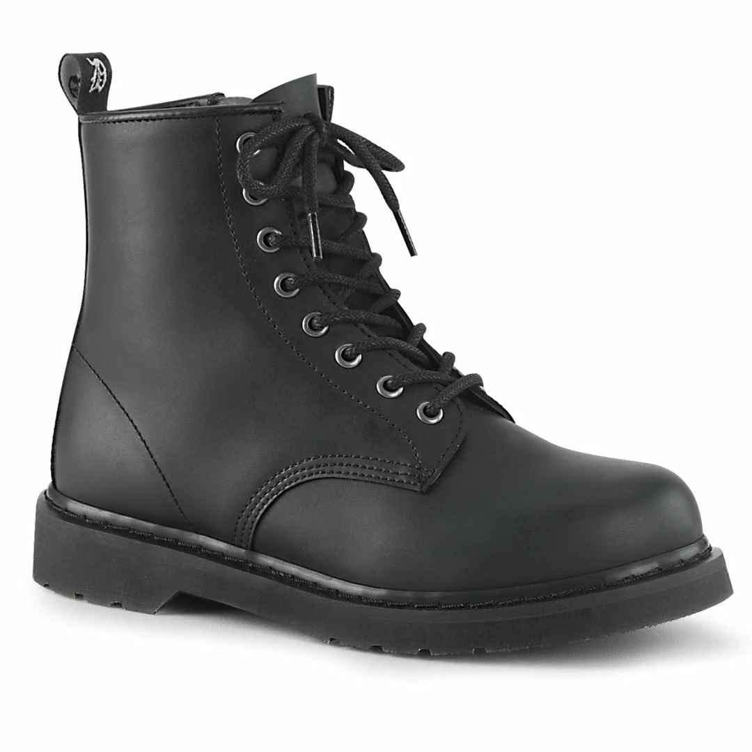 Stacked Flat Heel 8-Eyelet Lace-Up Mid Calf Unisex Vegan Boot with Back Pull-Tab