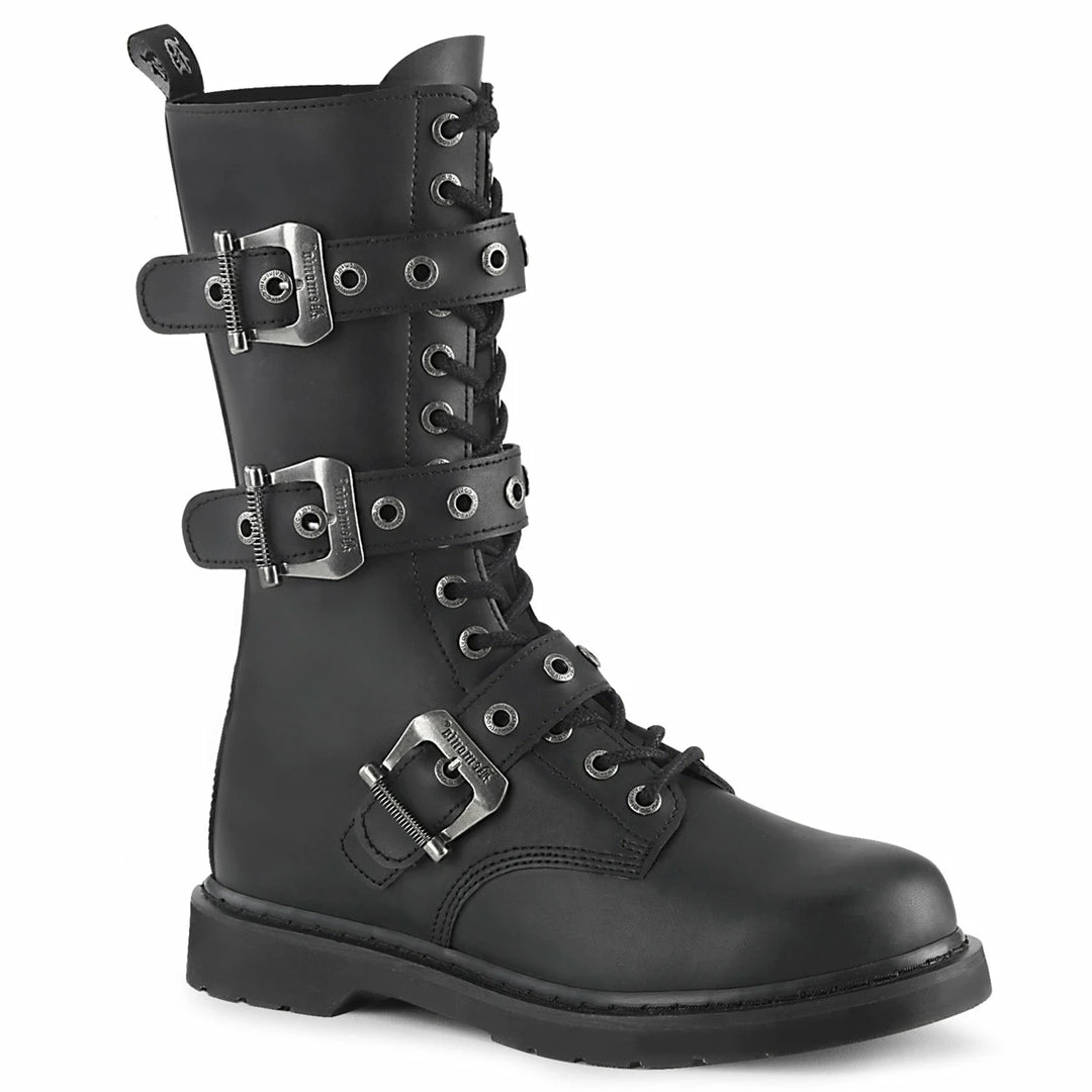 14 Eyelet Unisex Mid-Calf Combat Boot Featuring Triple Buckle Straps