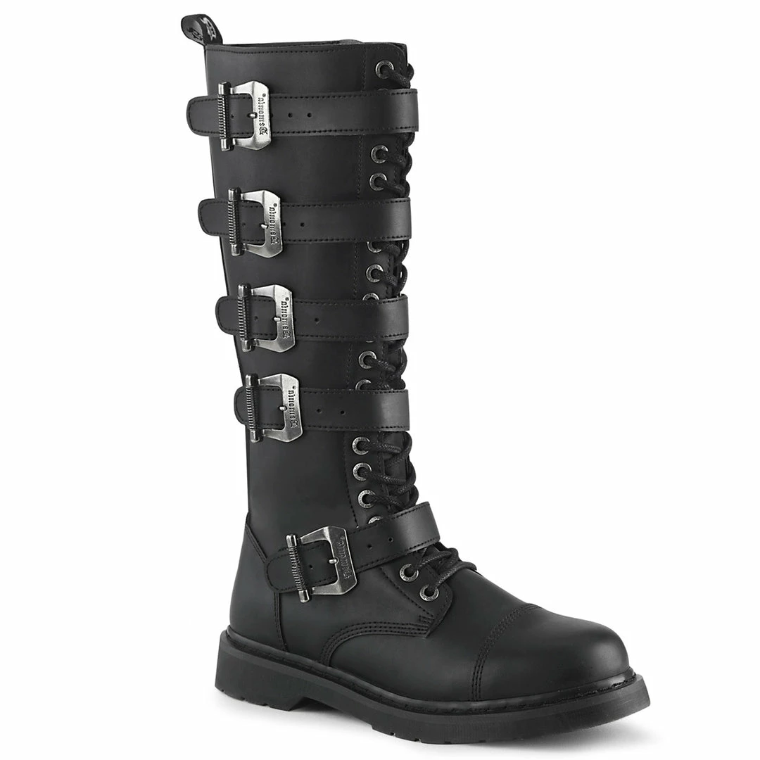 20 Eyelet Unisex Knee High Combat Boot Featuring 5 Buckle Straps