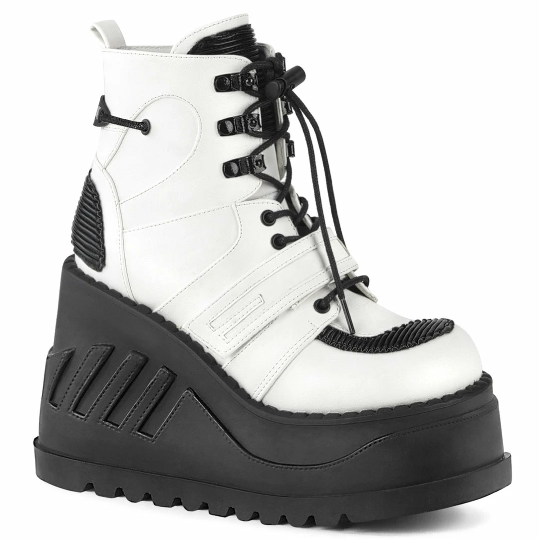 Wedge Platform Lace-Up Front Ankle Boot wit Hook & Loop Strap Closure on Vamp, Quilted Tongue, and Back Panels & Shoe Lace Stopper