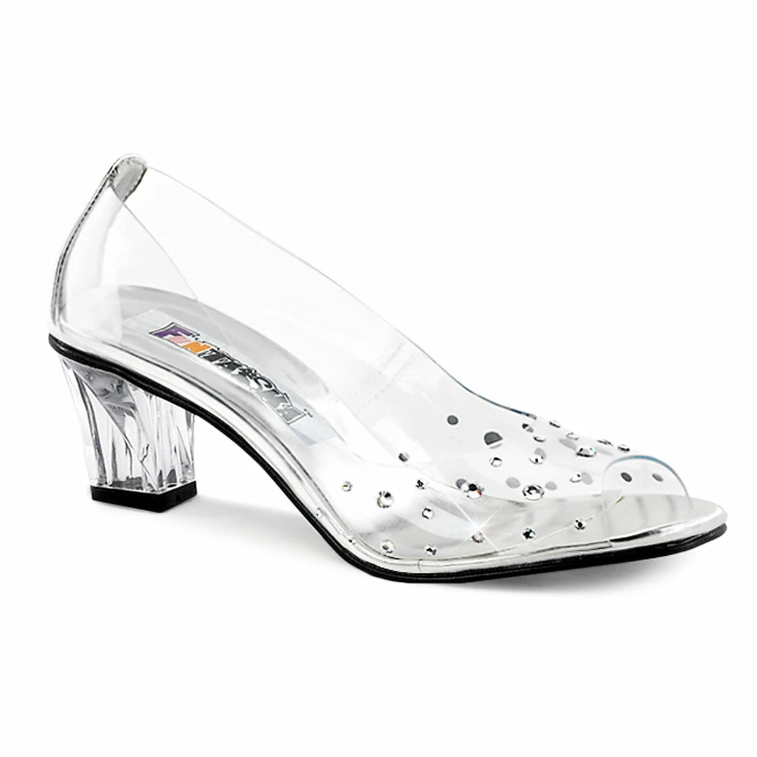 Clear Lucite Peep Toe Halloween Costume Pump with Rhinestone Embellishments on Front Vamp and HeelΒ