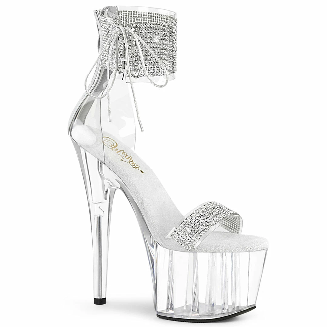 Platform Close Back Ankle CuffΓ’β¬Ε‘ΓΒ Stripper Sandal with Side Lacing Featuring Rhinestone Embellished Ankle Cuff & Toe Strap