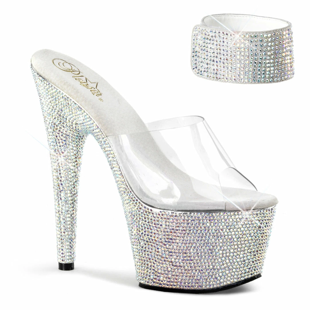 Platform Exotic Dancer Sandal Featuring Rhinestones Encrusted On the Entire Platform Bottom and Detached Ankle Cuff