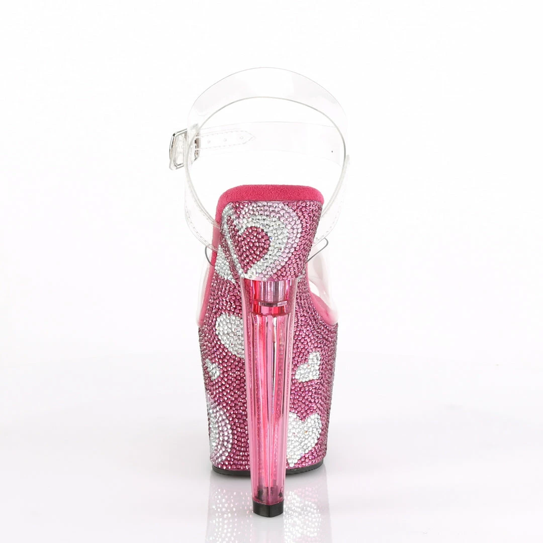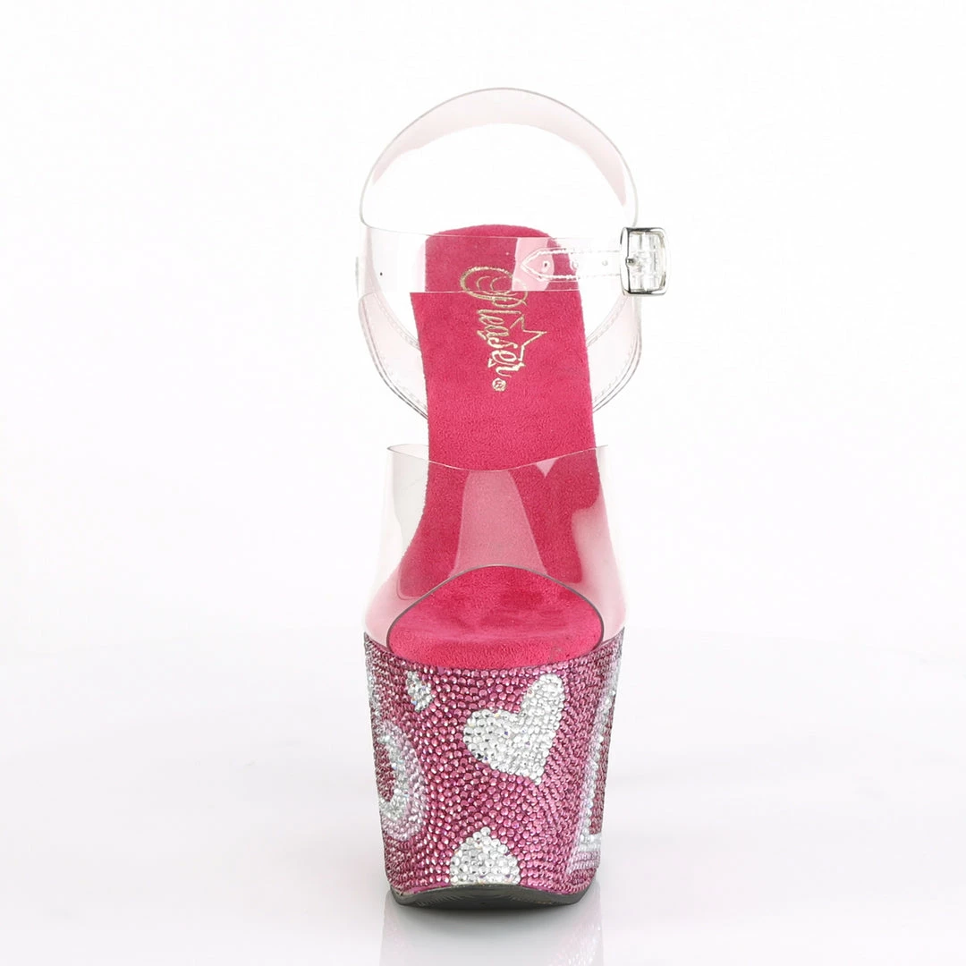 Ankle Strap Pole Dancing Sandal with Tinted Heel & Rhinestone Embellished Platform Bottom Featuring Contrast Color Hearts