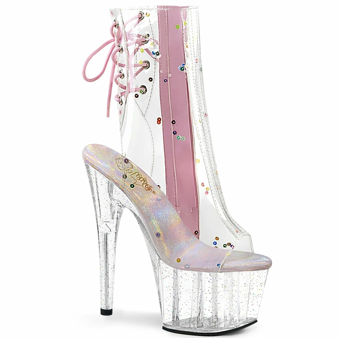 Toe/Heel Lace-Up Back Ankle Boot Featuring Multi Sequins Embellished Upper and Mini Iridescent Glitter on the Entire Platform Bottom, Inner Side Zip Closure