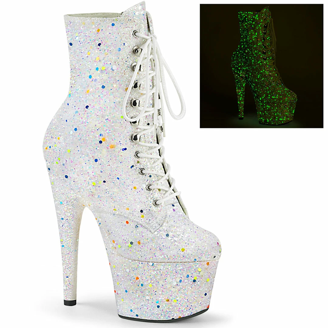 Platform Lace-Up Front Ankle Boot Featuring Blacklight Reactive Glittered Upper and Platform Bottom
