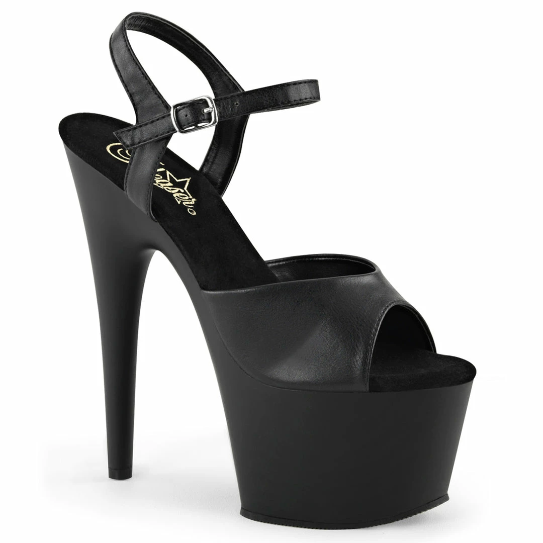 Black Vegan Leather Platform Ankle Strap Platform Stripper Sandal