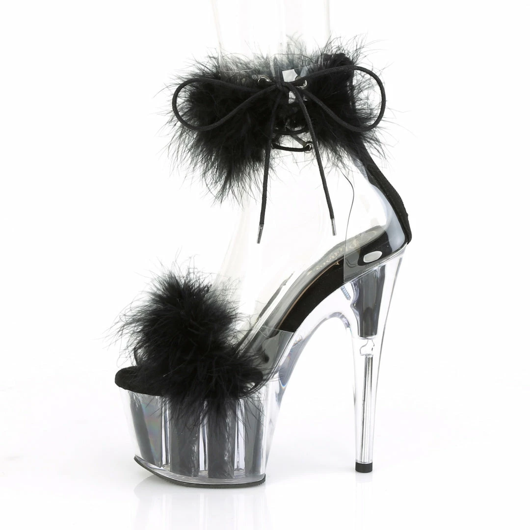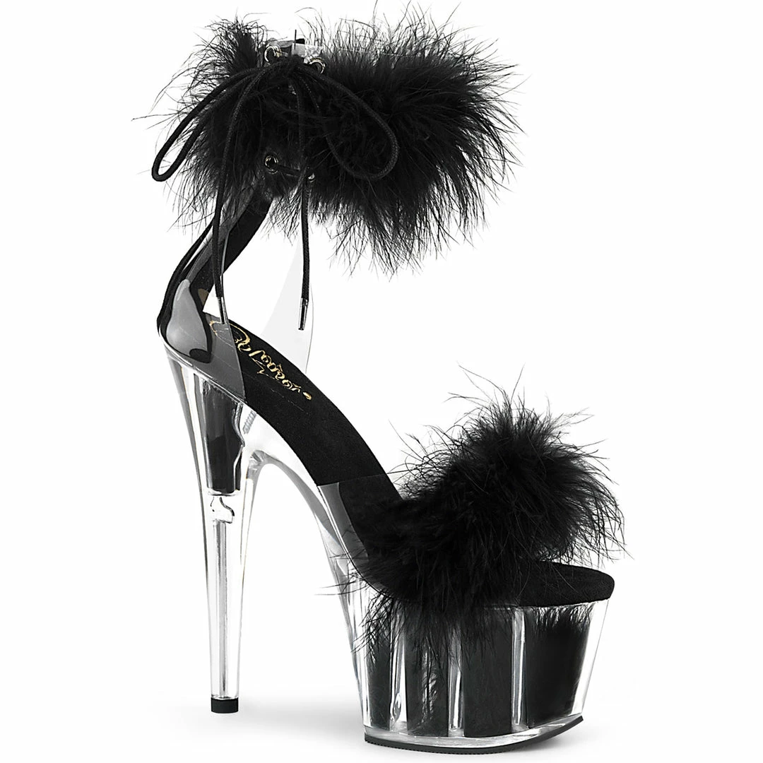 Platform Exotic Dancer Shoeรขโฌลกรย Close Back Ankle Cuff Sandal Featuring Black Marabou Fur on Vamp and Inside the Platform Bottom, Side Lacing & Back Zip Closure