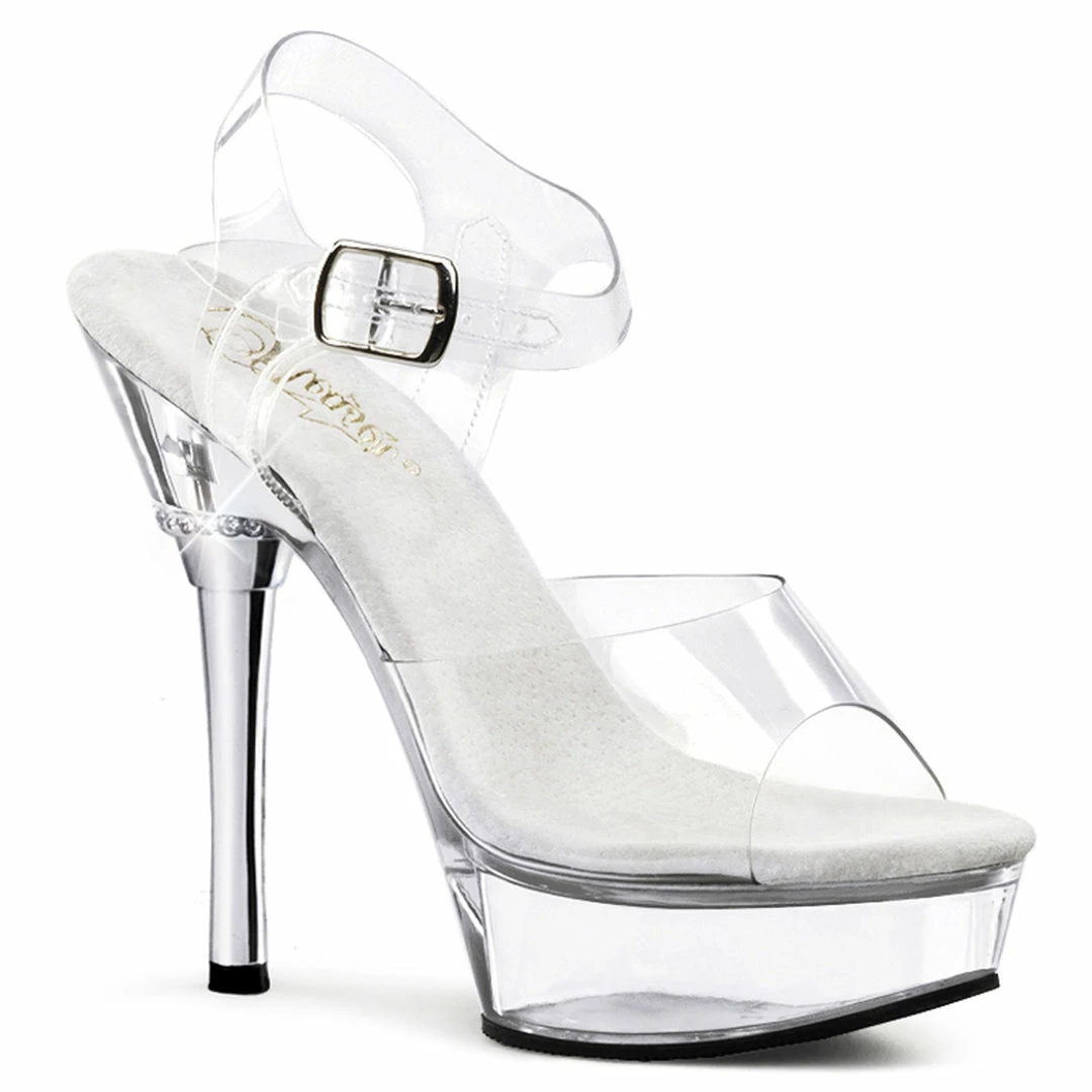 Clear Platform Chrome Heel Ankle Strap Sexy Sandal