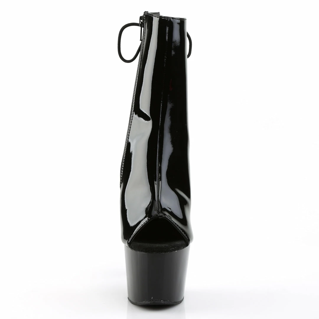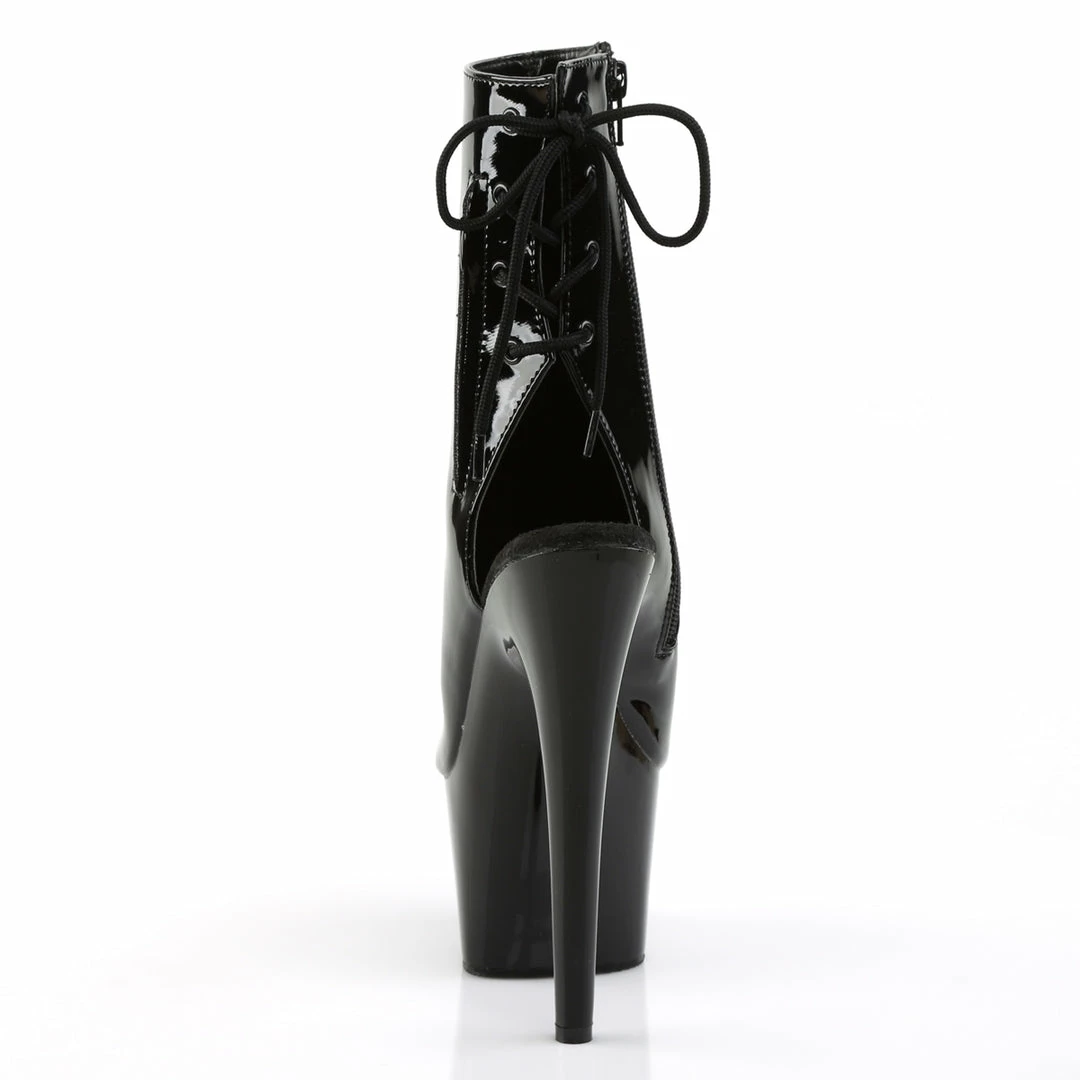Back Lace-Up Black Patent Ankle High Stripper Boot with Hidden Zip Pocket