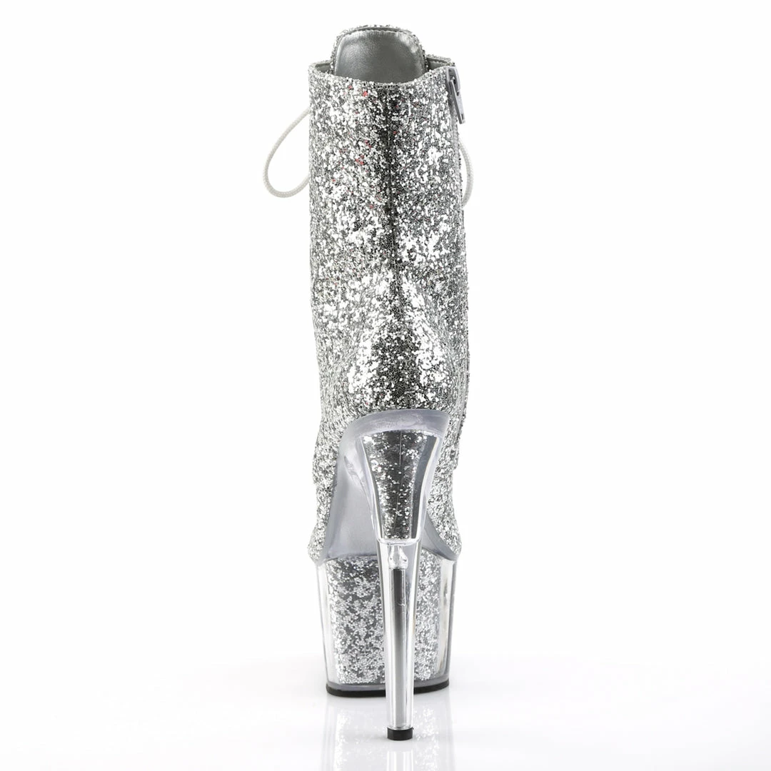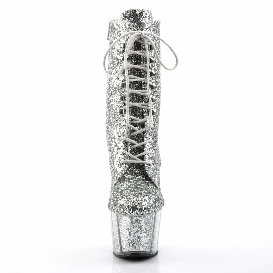 Glitter-filled Platform Front Lace-Up Ankle High Stripper Boot