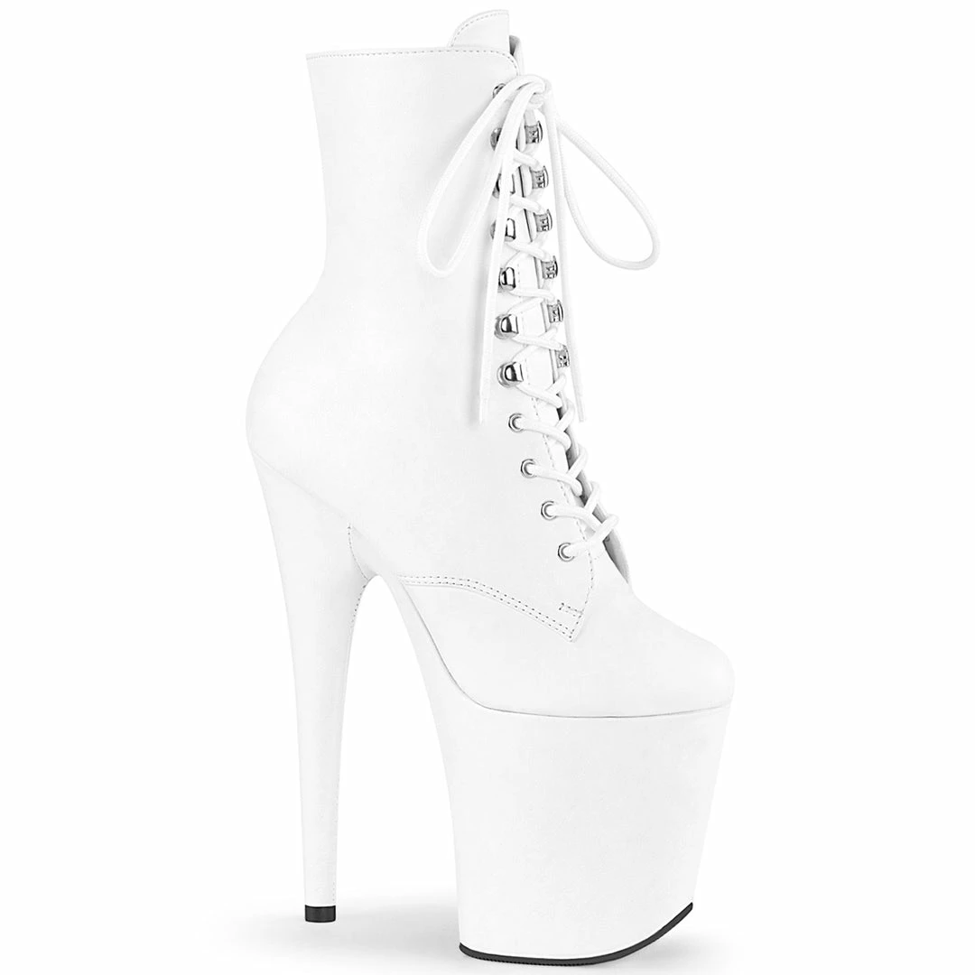 White Leather Platform Lace-Up Front Ankle High Exotic Dancer Boot Featuring Fully Wrapped Platform Bottom