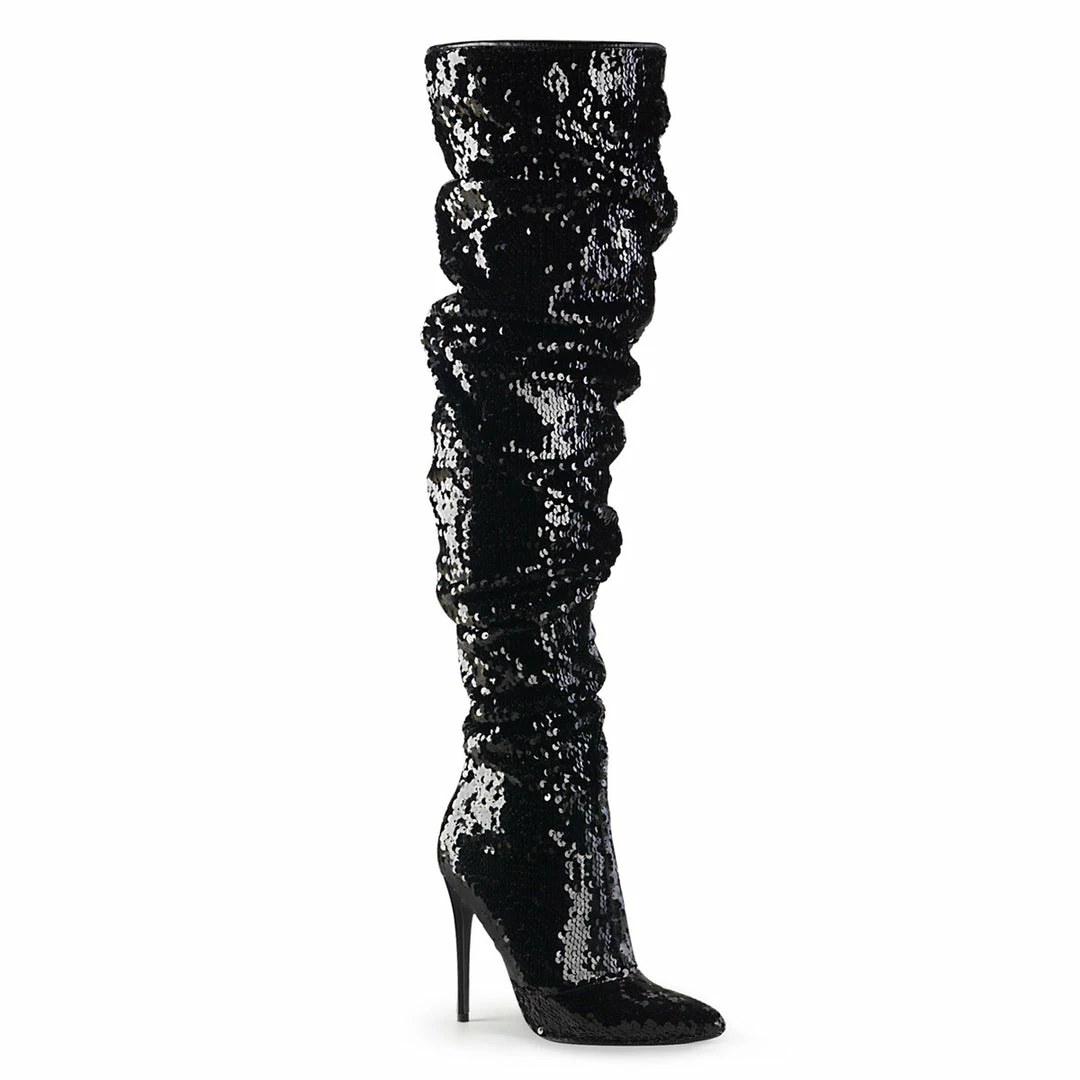 Over-the-Knee Boot Featuring Ruched Slouchy Sequins Body