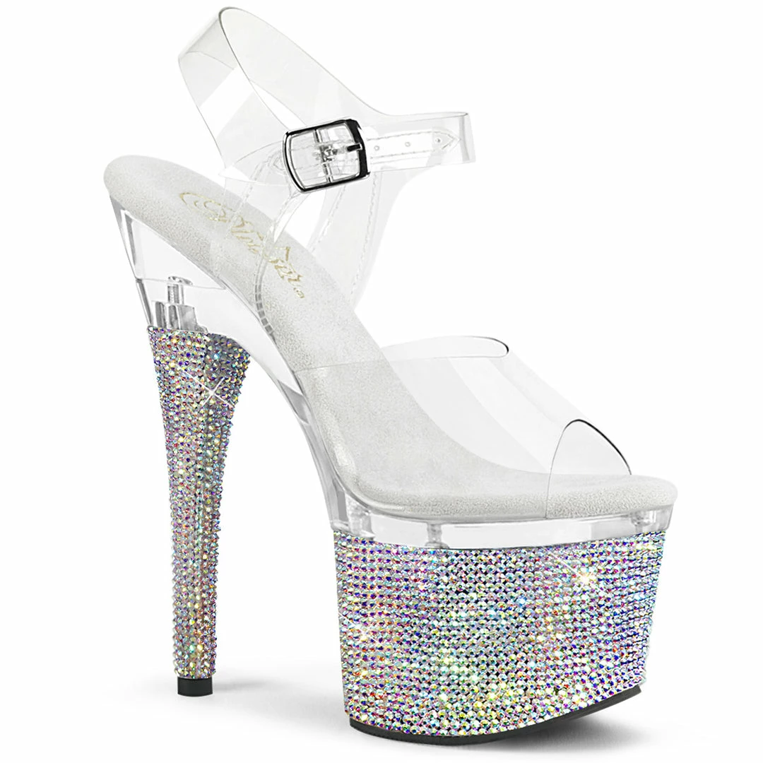 Platform Ankle Strap Sandal Featuring AB Rhinestones Encrusted All-Over the Entire Platform Bottom