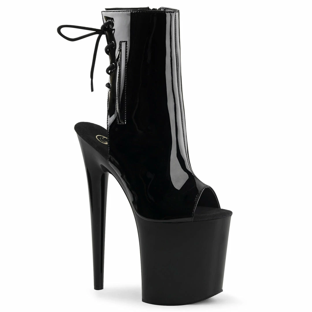 Black Patent Platform Open Toe/Heel Back Lace-Up Ankle High Boot