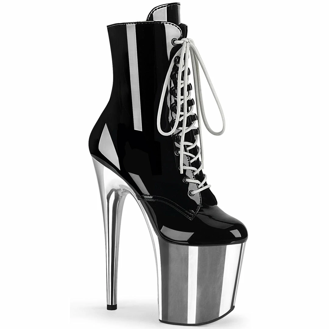 Black Patent Lace-Up Front Ankle Boot FeaturingΓ’β¬Ε‘ΓΒ Silver Chrome Plated Platform Bottom