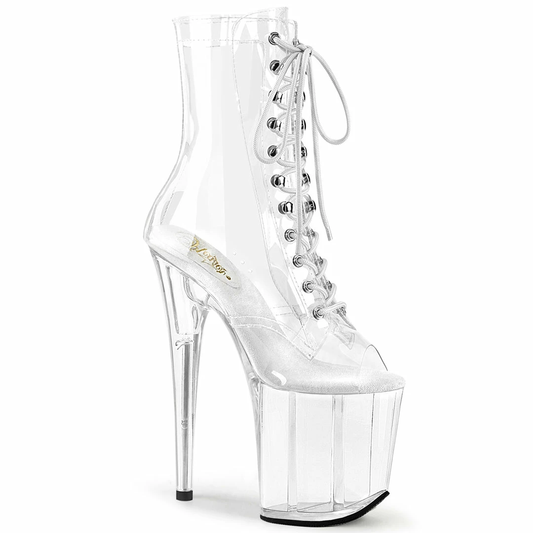 Clear Platform Peep Toe Lace-Up Front Ankle Boot