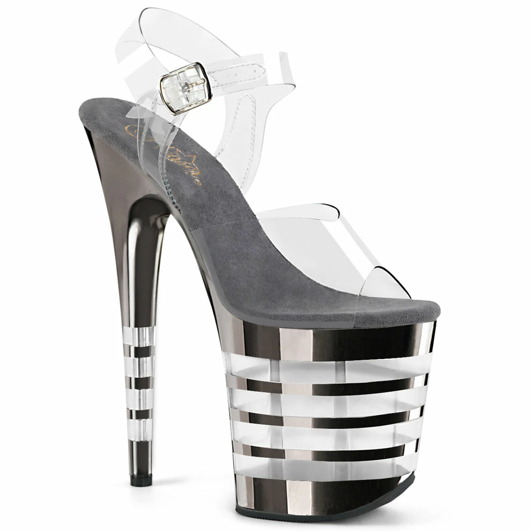 Clear Lined Platform Ankle Strap Exotic Dancer Featuring Pewter Chrome Plated Platform Bottom
