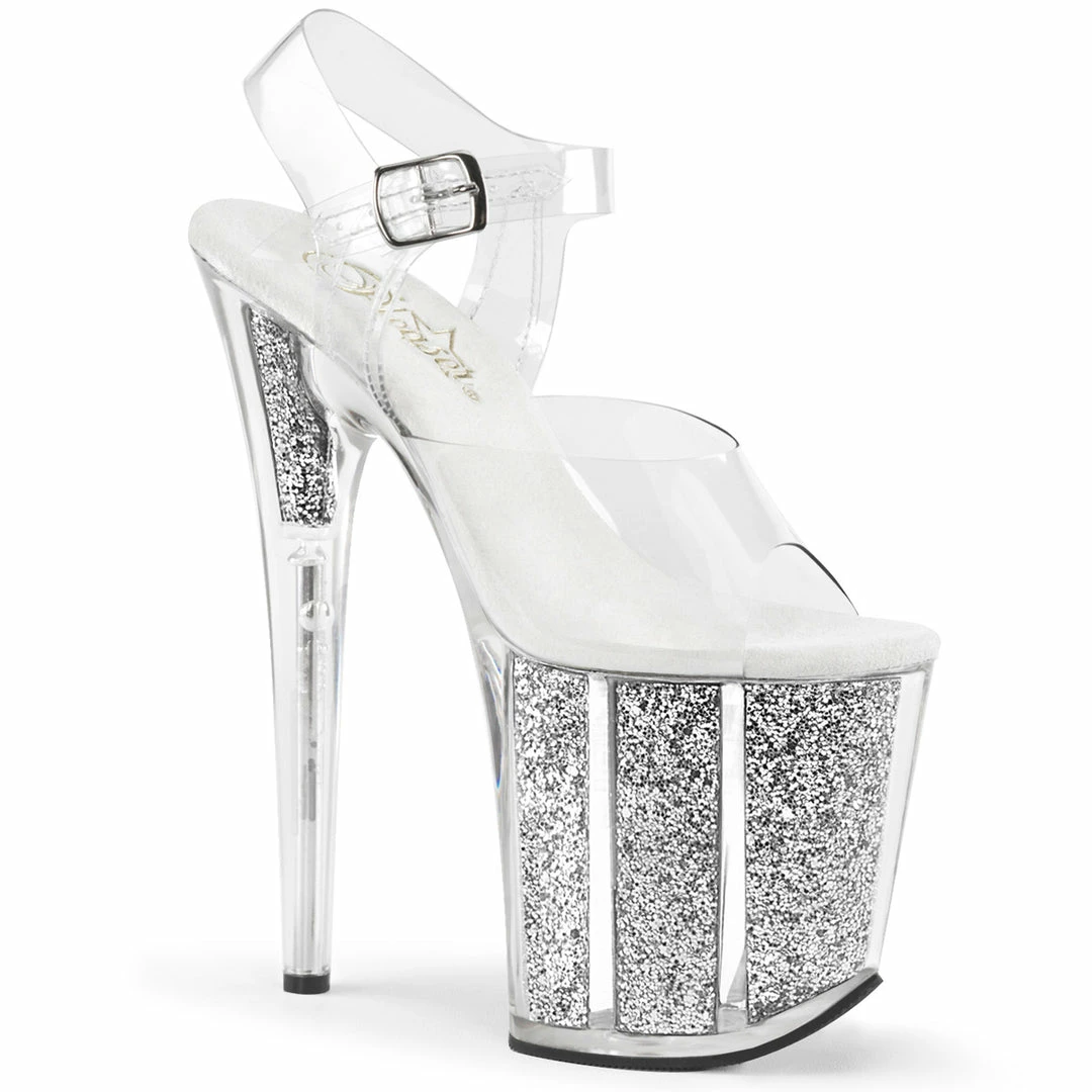 Platform Ankle Strap Sandal with Silver Glitter Inserts in the Platform Bottom