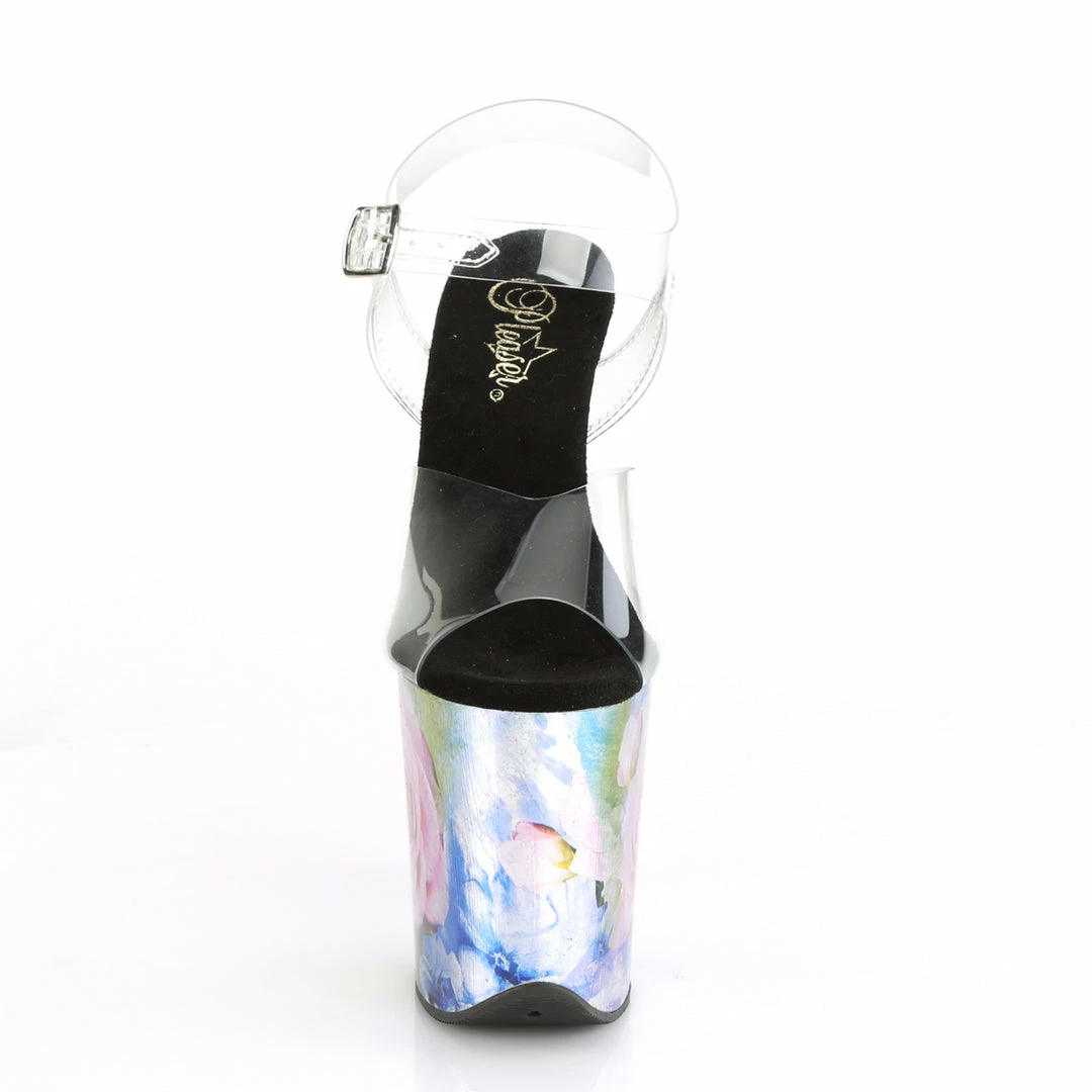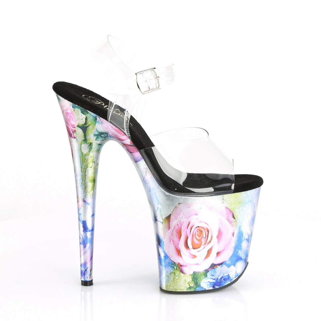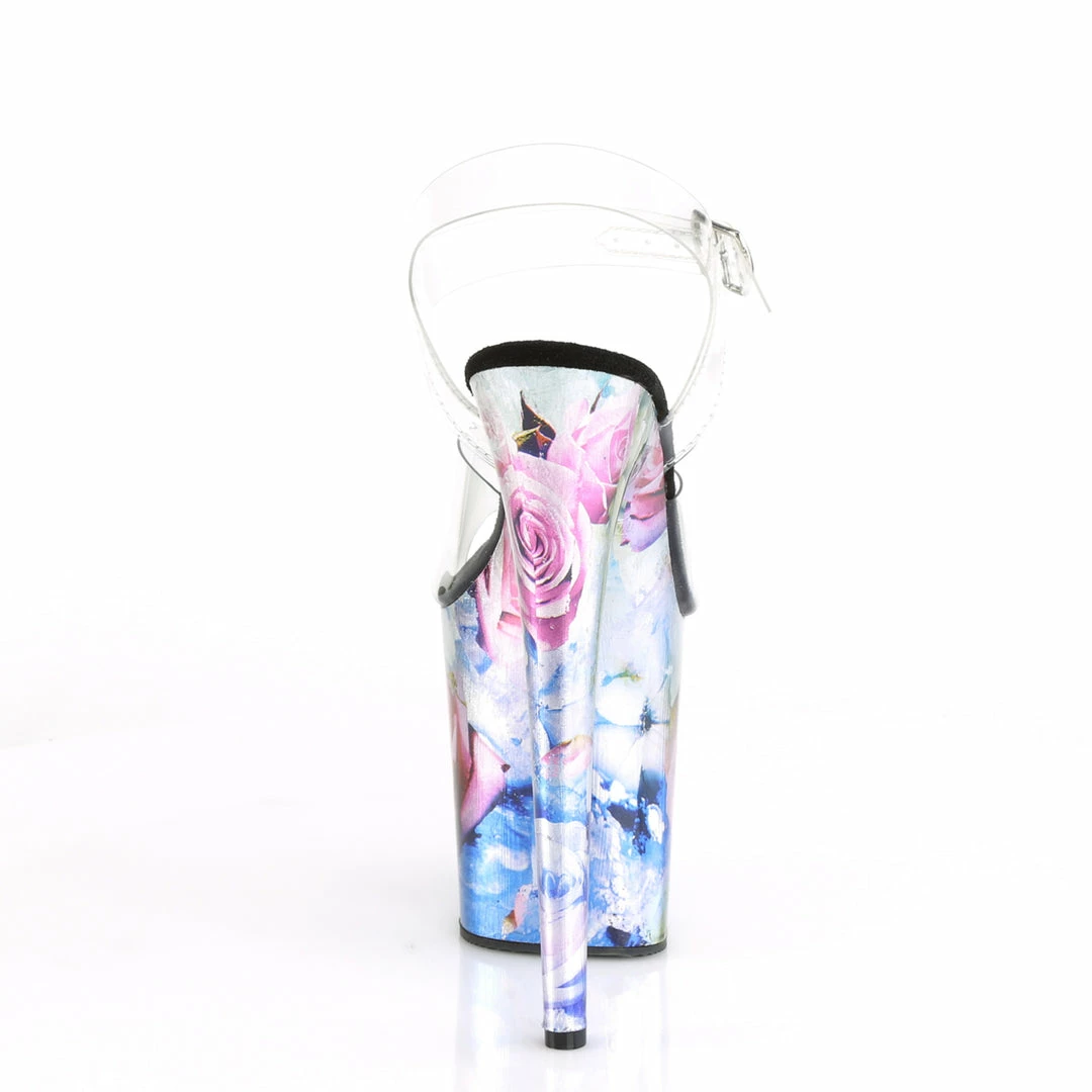 Platform Ankle Strap Exotic Dancer Sandal Featuring Metallic Rose Print Platform Bottom‚