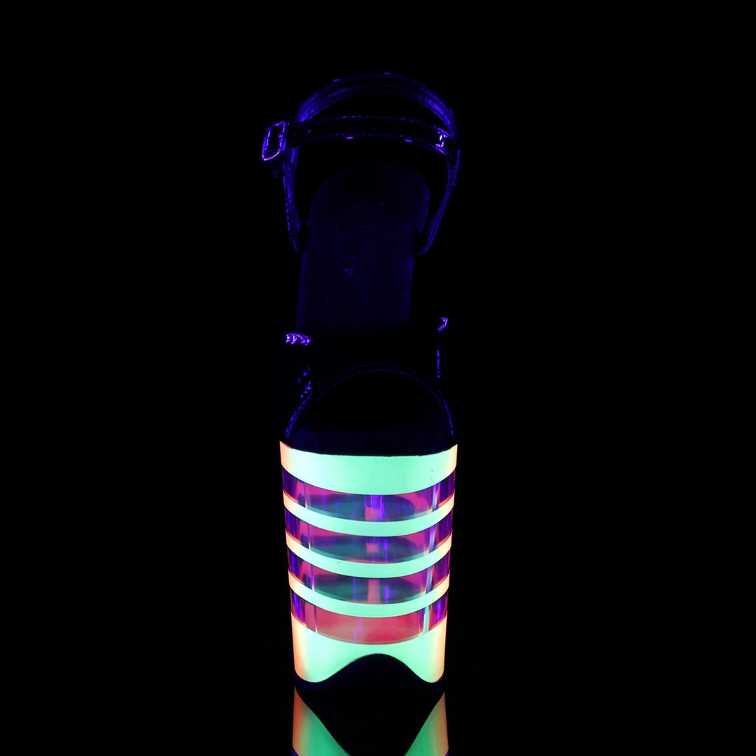Platform Ankle Strap Exotic Dancer Sandal Featuring Neon UV Reactive Bottom with Lines