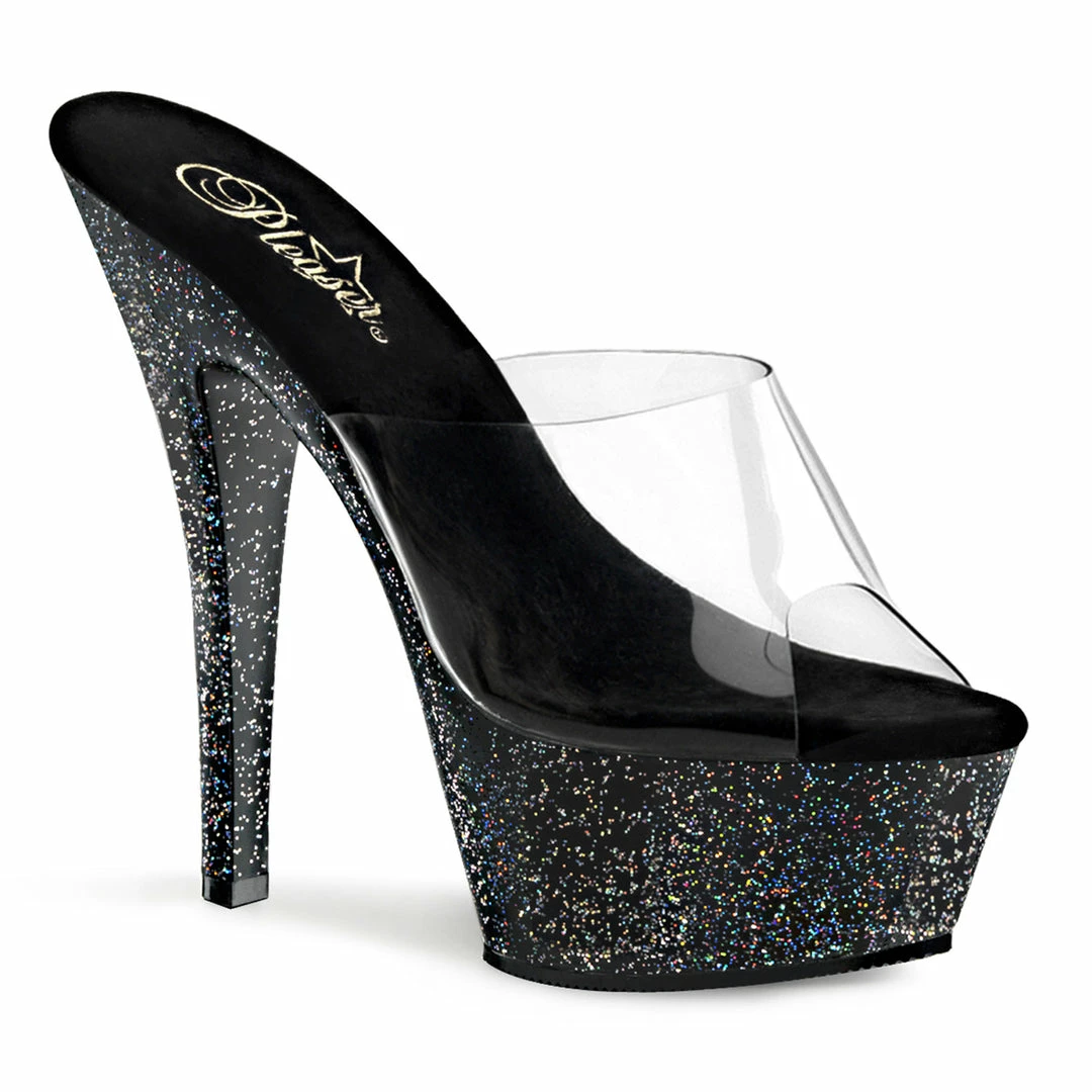 Clear Upper Platform Slide Sandal Featuring Mini Iridescent Glitter on the Entire Platform