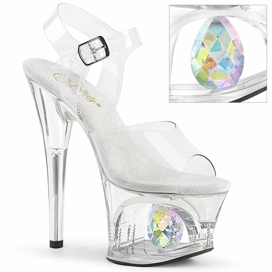 Cut-Out Platform Ankle Strap Sandal Featuring Faceted Cut Crystal Glass Diamond Inside the Platform BottomΓ’β¬Ε‘ΓΒ
