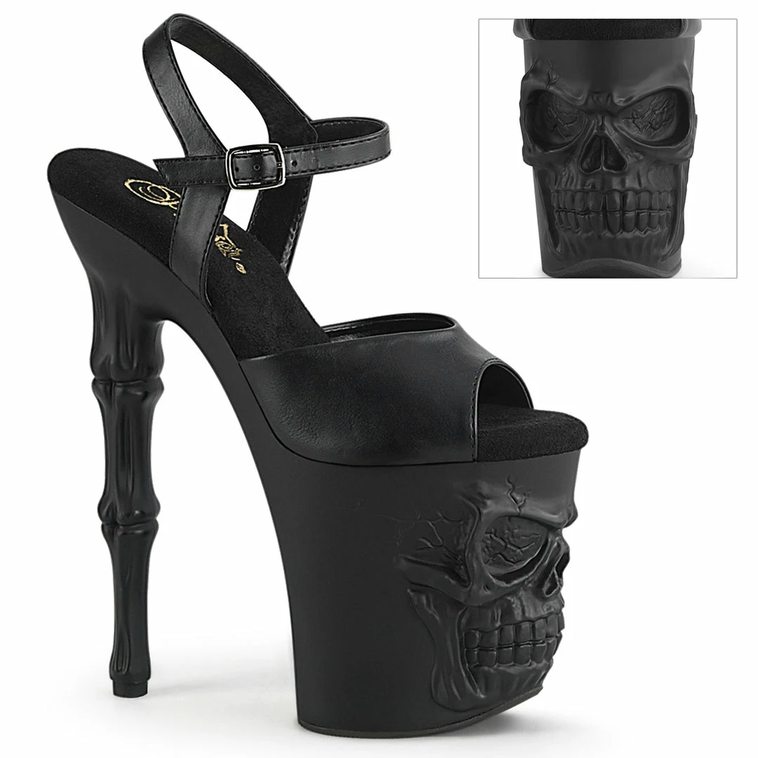 Platform Ankle Strap Sandal Featuring Skull & Bones Platform Bottom