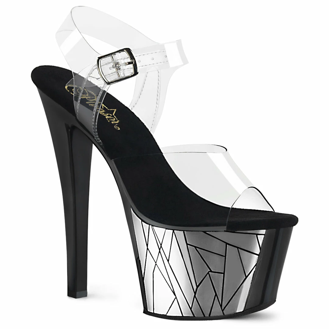 Platform Ankle Strap Pole Dancing Sandal Featuring Chrome Shattered Glass Design on the Inner & Outer Sides of the Platform BottomβΒ