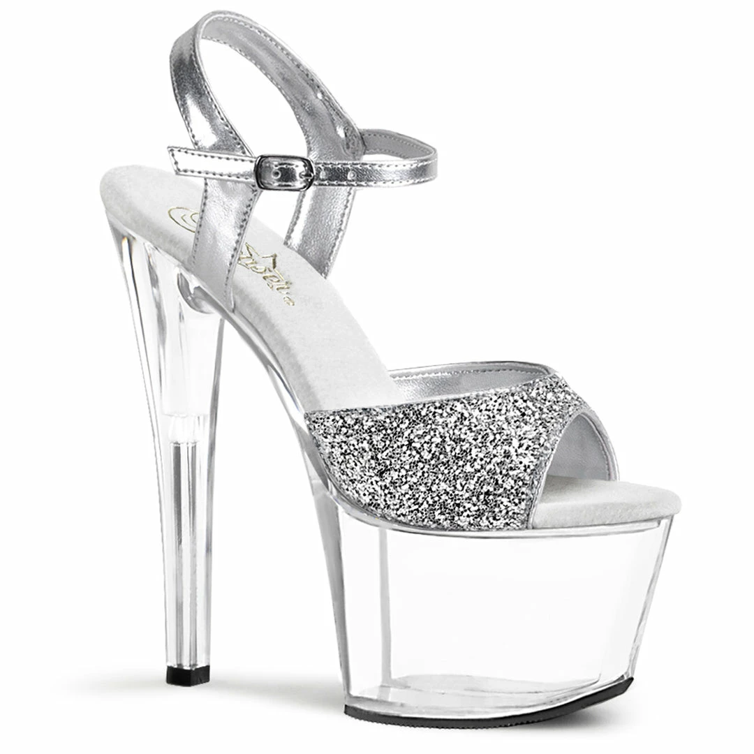 Clear Platform Ankle Strap Silver Glitter Upper Sandal