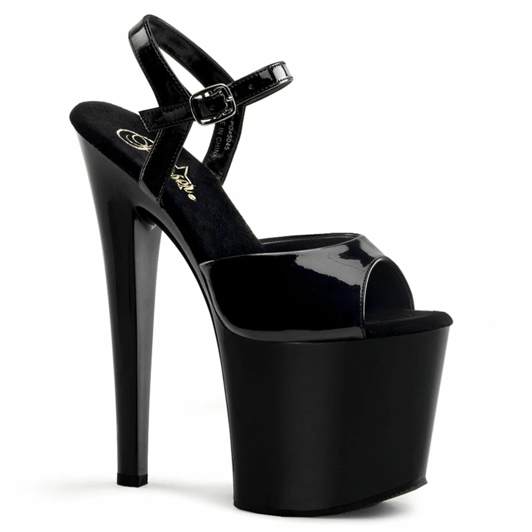 Classic Black Patent Ankle Strap Platform Stripper Sandal