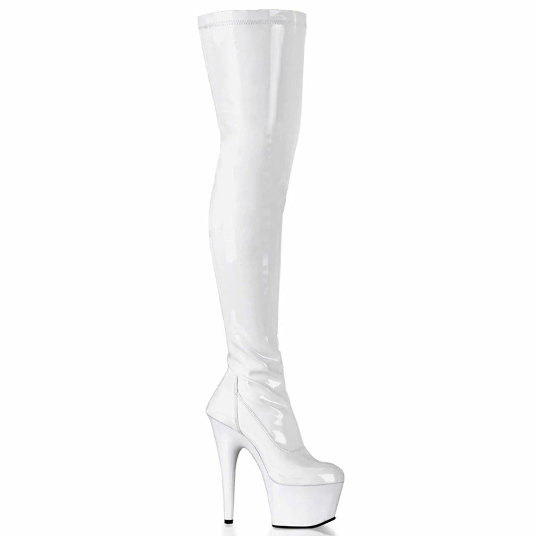White Patent StretchΓΒ Platform Thigh Boot Stripper Boot