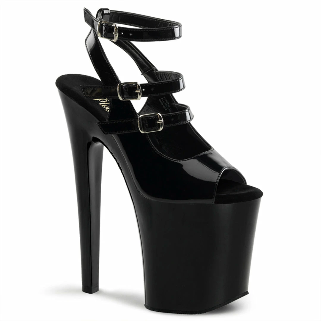 Black Patent Sling Back Stripper Pump With Strappy Details