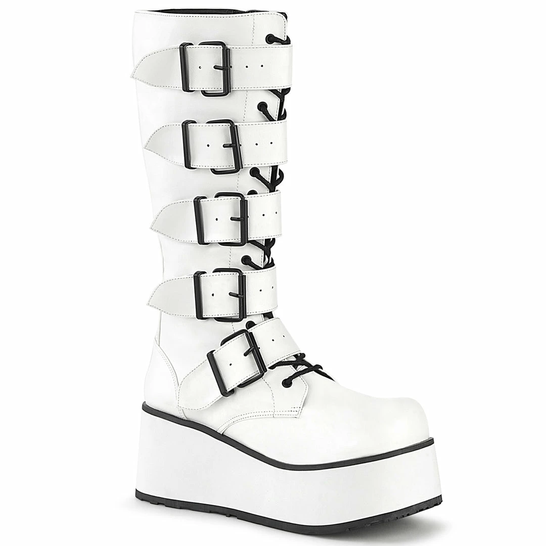 Platform Lace-Up Knee High Gothic Boot with Buckle Straps