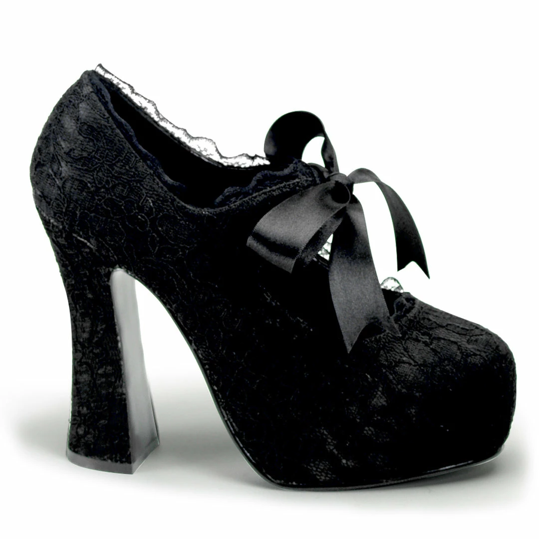 Γ’β¬Ε‘ΓΒ Concealed PlatformΓ’β¬Ε‘ΓΒ Satin Pump with Lace Overlay & Bow