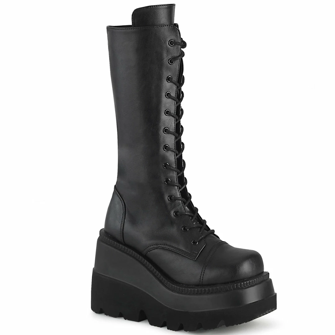 Wedge Platform Lace-Up Front Mid-Calf Boot